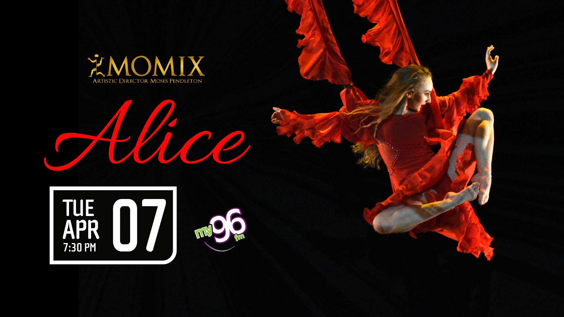 Seamlessly blending illusion, acrobatics, magic, and whimsy, MOMIX sends audiences flying down the rabbit hole in Moses Pendleton’s newest creation, ALICE, inspired by Lewis Carroll’s classic Alice in Wonderland. “I don’t intend to retell the whole Alice story” Pendleton says, “but to use it as a taking off point for invention.”