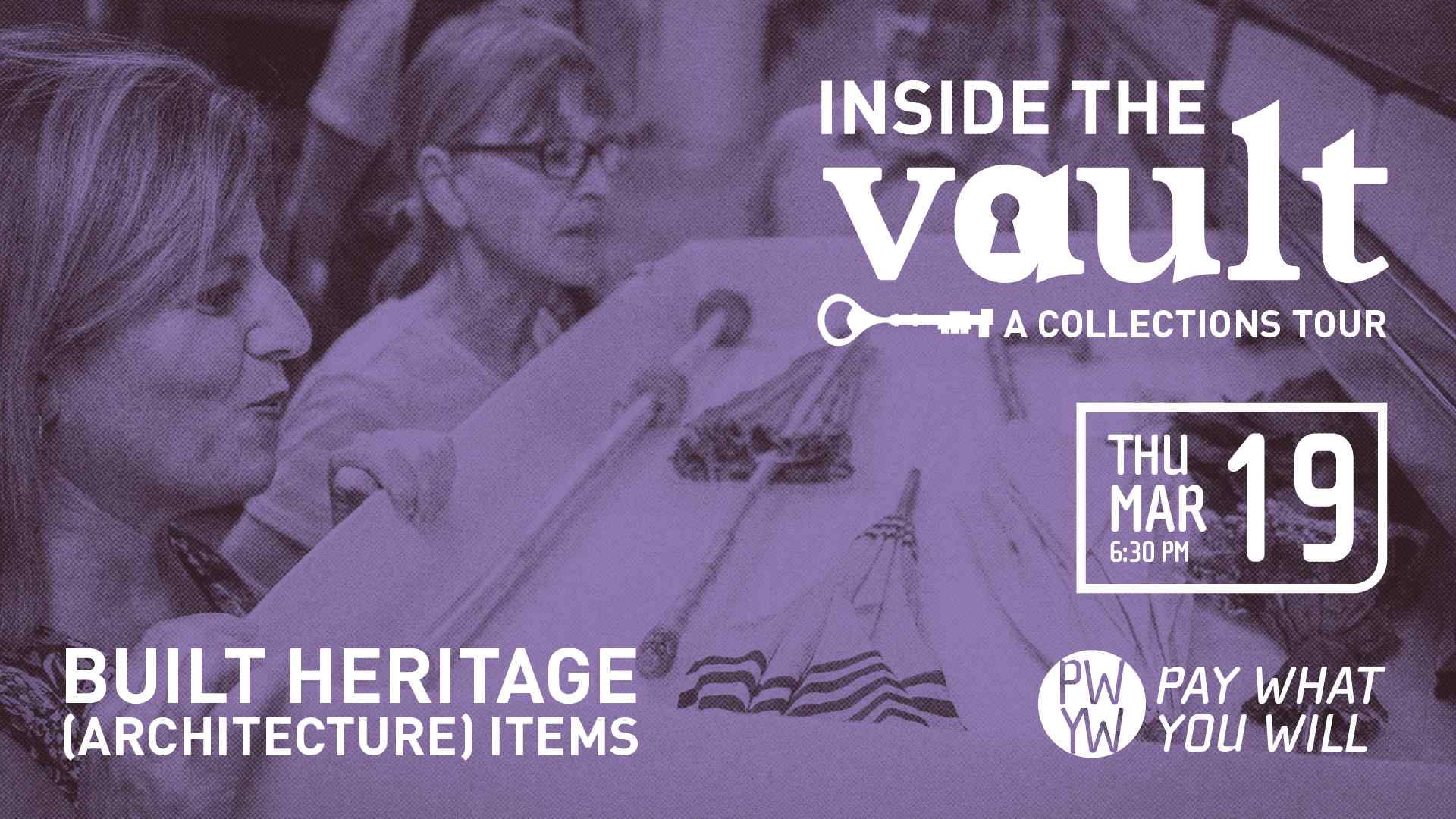 With a special focus per tour, our team will highlight some of their favourite pieces and share insights into their significance and preservation. You'll have the rare opportunity to explore our 10,000-square-foot on-site storage facility and engage in meaningful conversation along the way. Questions and discussion are welcome throughout the tour.